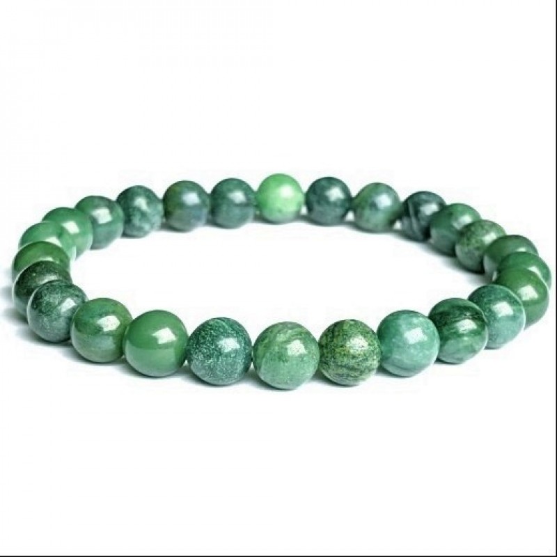 Afrikai jade ásvány karkötő, melyben a szemek mérete kb. 8 mm.