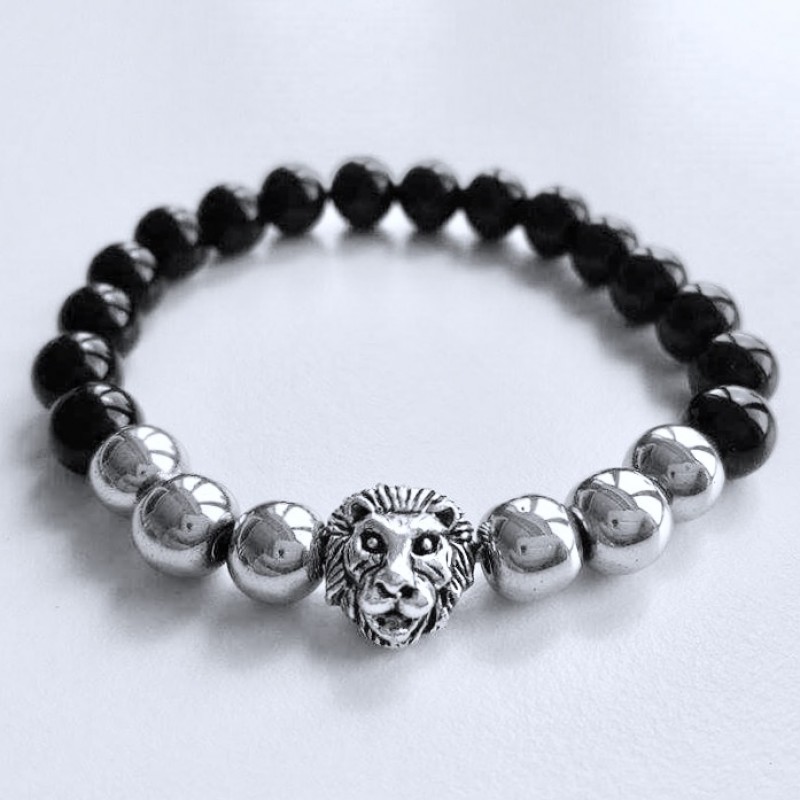 Hematit ónix oroszlán karkötő