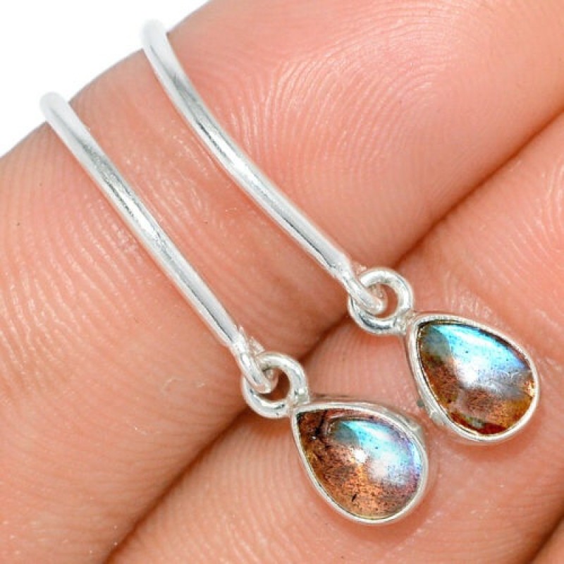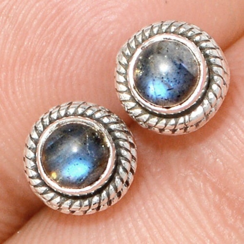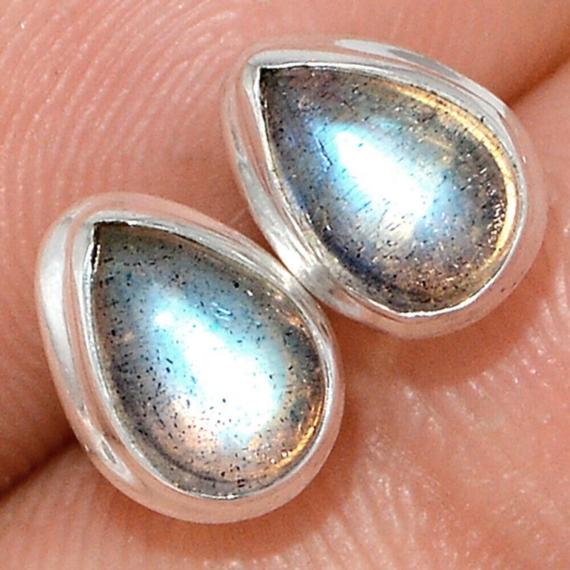 Gyönyörű, csillogó labradorit fülbevaló pár, melyben a kő mérete kb. 6-7mm.
