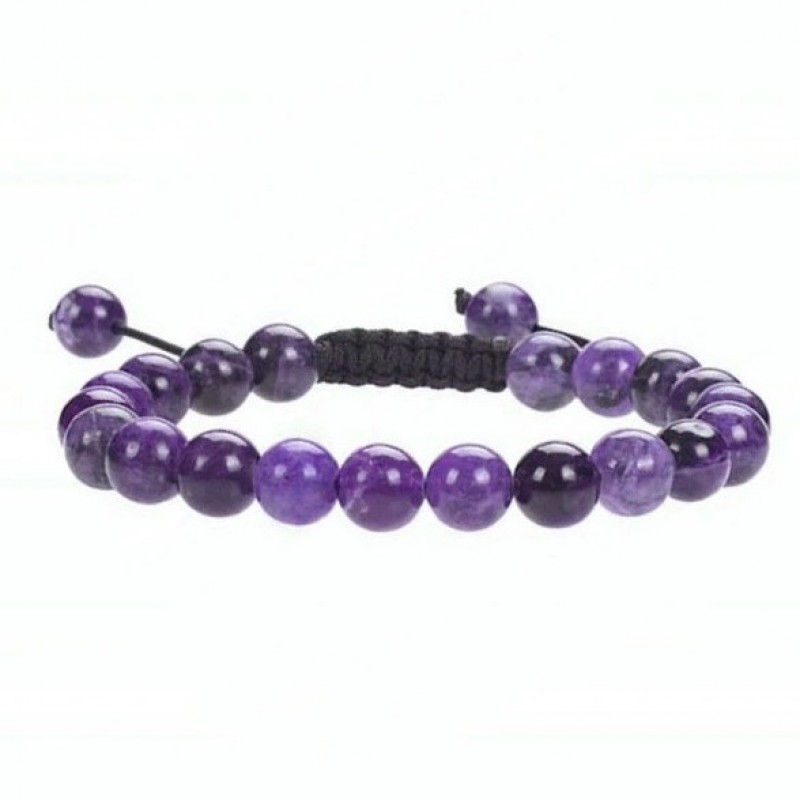 Különleges csúszó csomózással ellátott, állítható méretű, lila jáde karkötő, tartósan színkezelt.