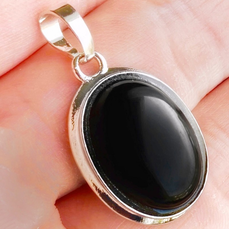 Fekete ónix medál foglalatban, melynek mérete kb 3cm. Az ónix az achát és a kalcedon fekete színű változata. A medálok mérete akasztórésszel, foglalattal együtt értetendőek.