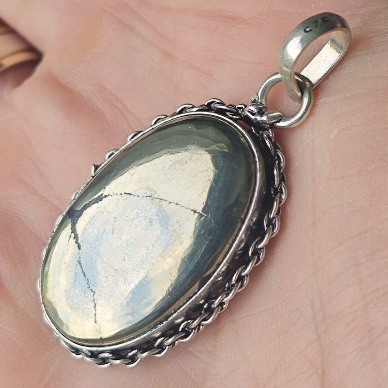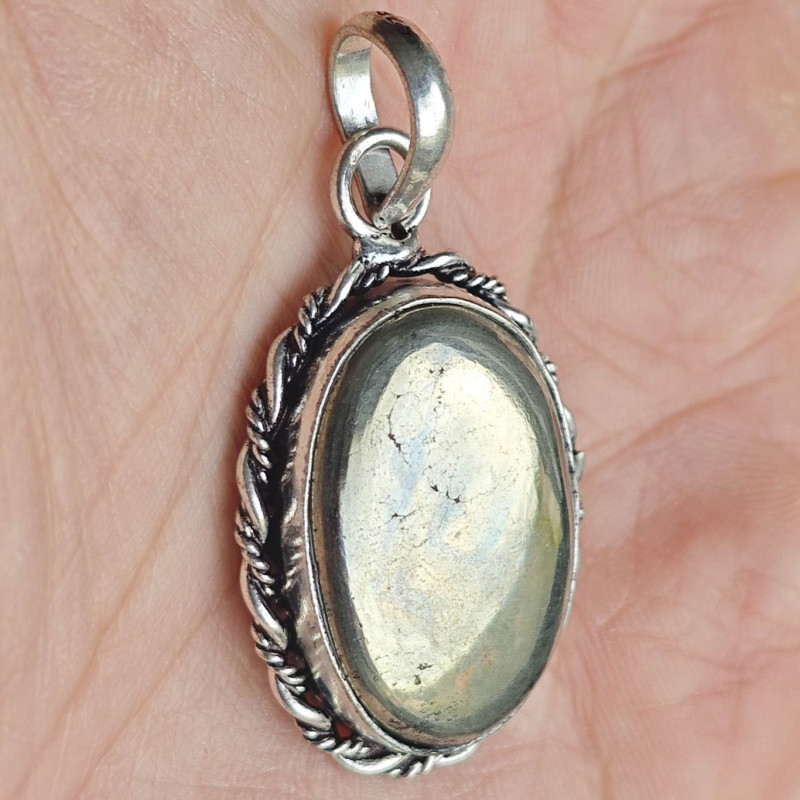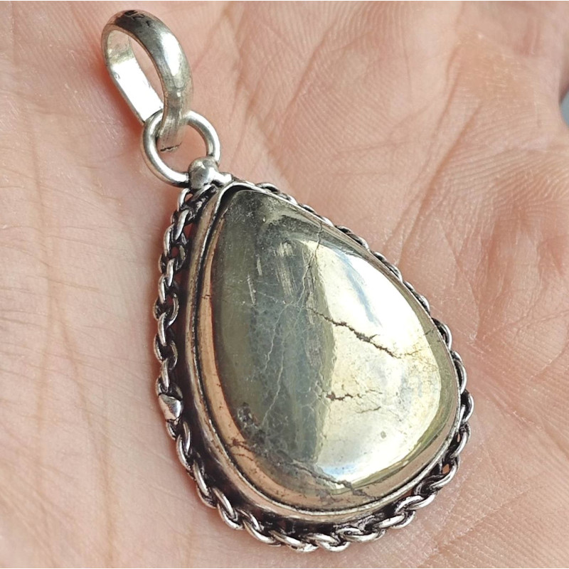 Egyedi pirit ásvány medál, melynek mérete kb. 5 cm.