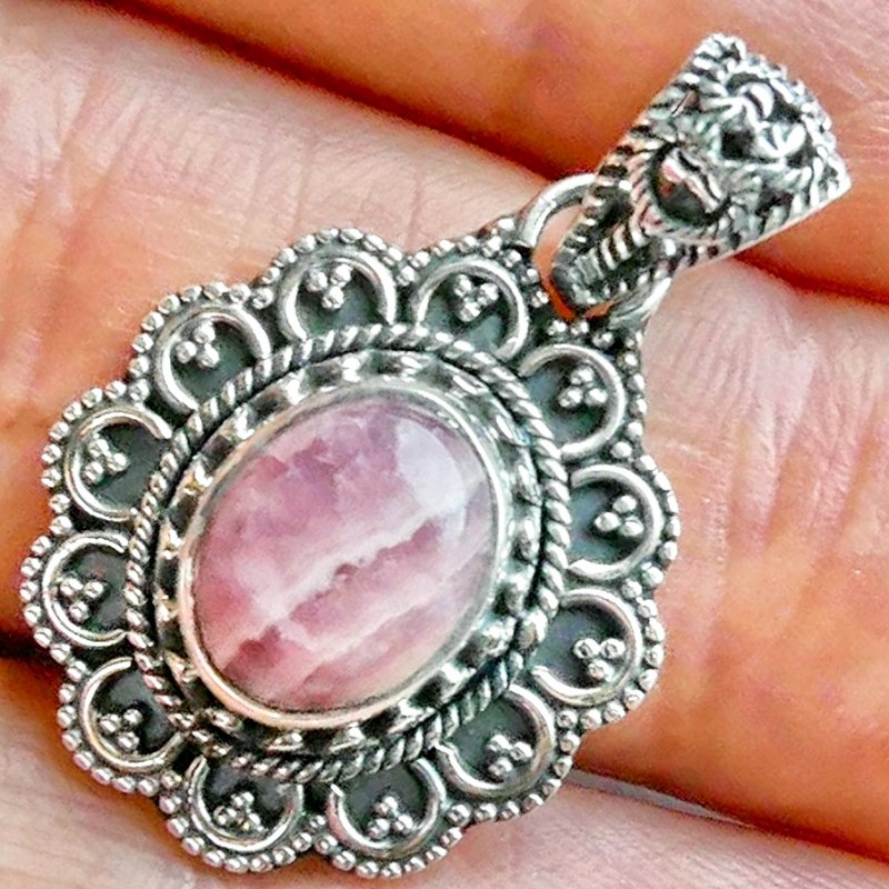 Rodokrozit medál (eredeti rodokrozit), extra színű, melynek mérete kb. 3,5 cm.