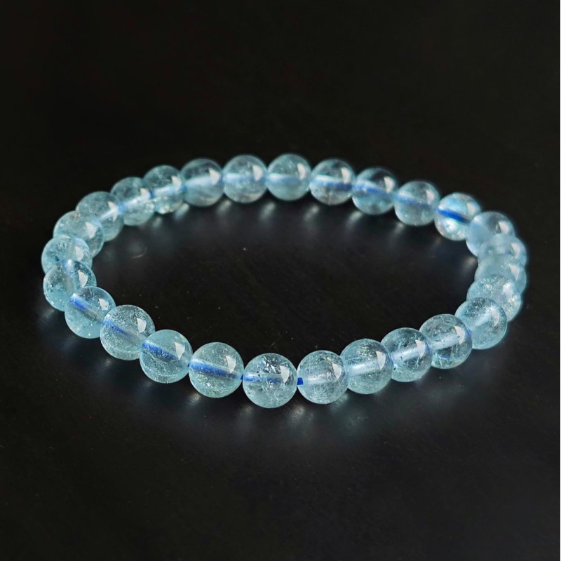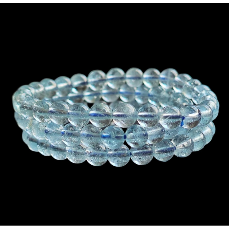 Topáz karkötő nagyon finom kékes árnyalatban, melyben a hőkezelt szemek mérete 6 mm.